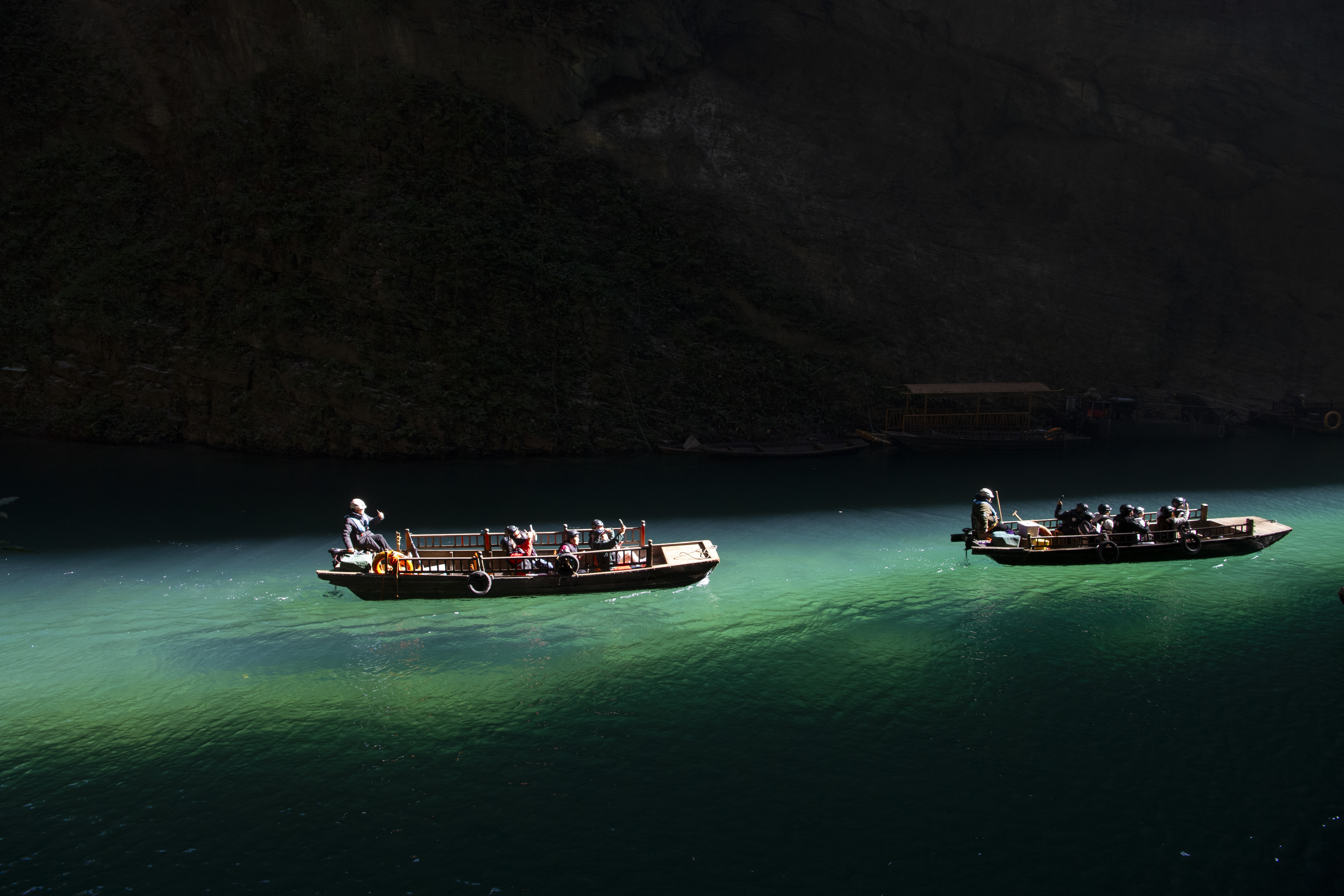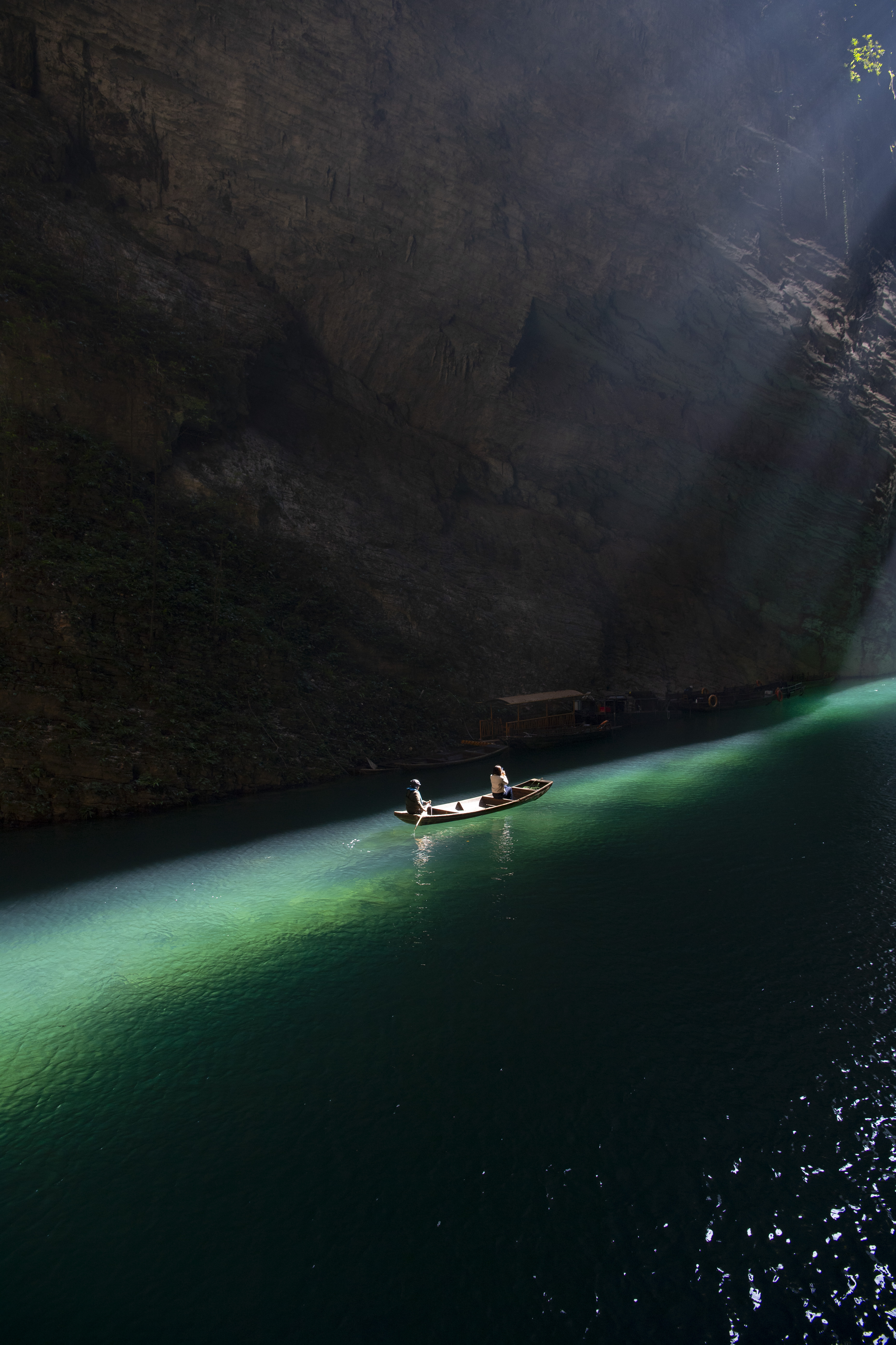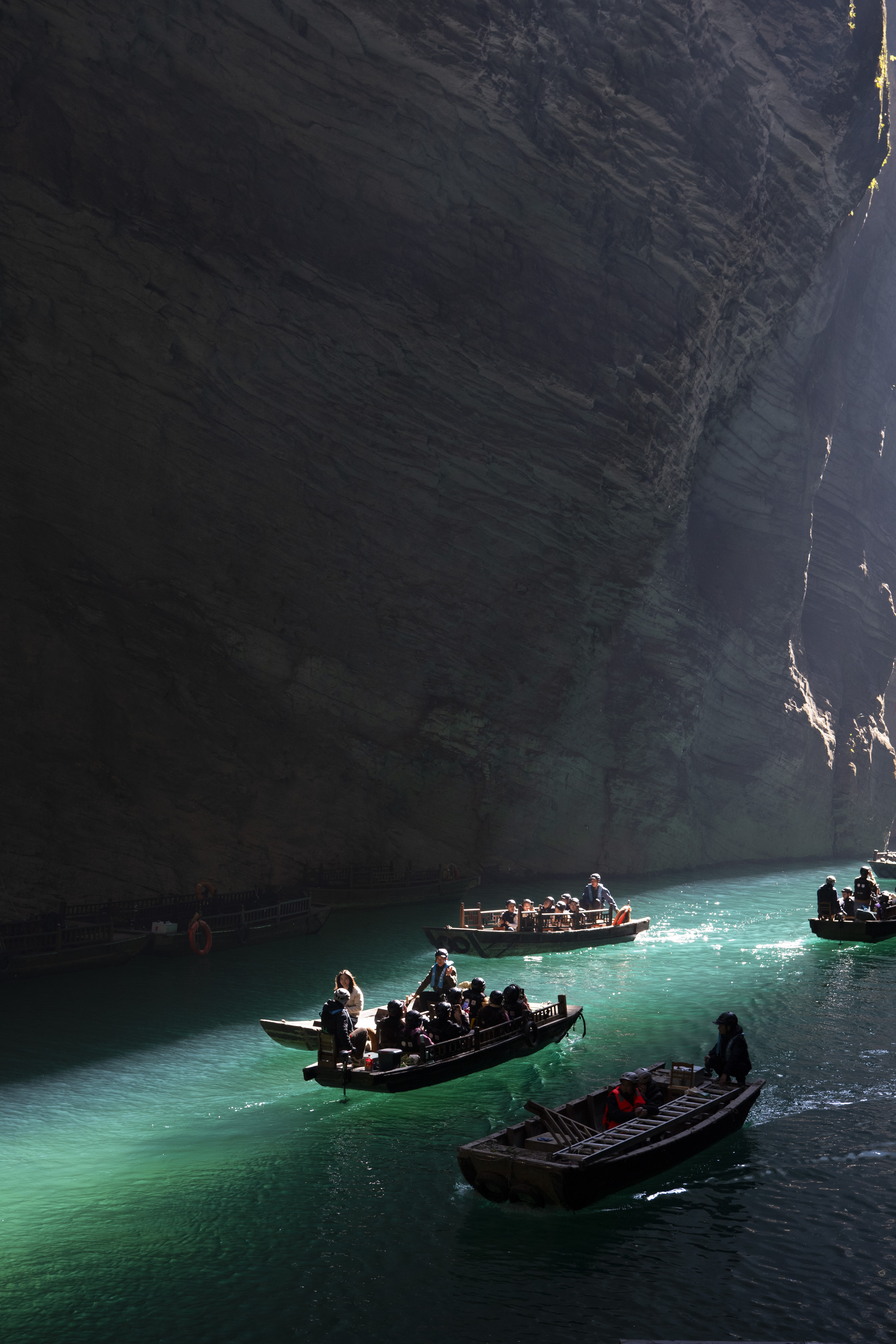 初冬时节,湖北省恩施土家族苗族自治州鹤峰县屏山峡谷迎来迷人景观。正午时分,阳光穿过幽深地缝,将蜿蜒的“一线天”照亮,舟行水上若悬浮于空中,形成了独特的“舟浮空中”奇观,吸引了众多游客前来打卡,已成为当地推动生态旅游、促进乡村振兴的亮丽名片。(杨顺丕 丁慧玲 摄)